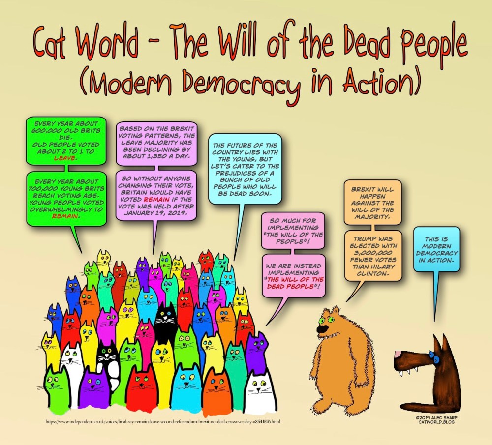 In the Brexit vote, older people voted to Leave but the young voted overwhelmingly to Remain. Since the vote, many older people have died and many young people have become old enough to vote. If the vote was held now, with no one changing their vote, the country would probably vote to Remain in the E.U.