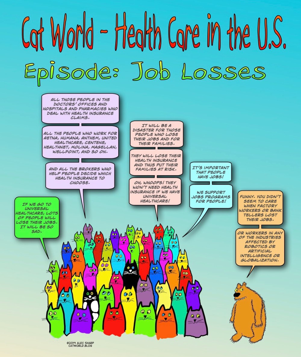 Any change towards a Medicare-for-All type of system will lead to large job losses in the health insurance industry. But this is an issue we need to face with all job losses caused by changing conditions.