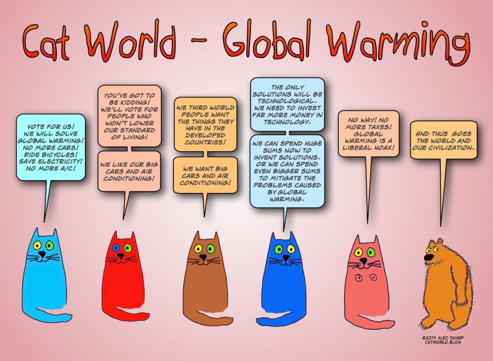 People are not likely to vote for someone who promises to lower their standard of living. Perhaps we need to invest heavily to find a technological solution to Global Warming.