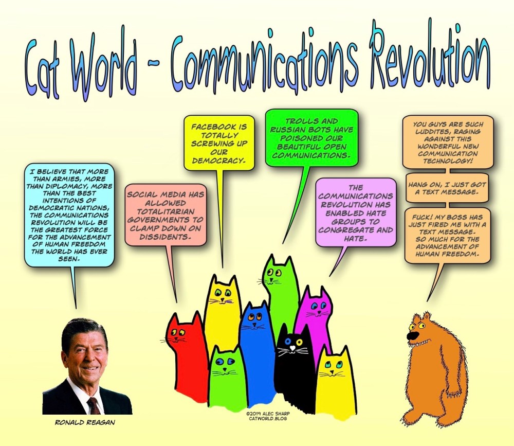 In 1989, Ronald Reagan said “the communications revolution will be the greatest force for the advancement of human freedom the world has ever seen“. Well, we’ve seen how well that turned out.