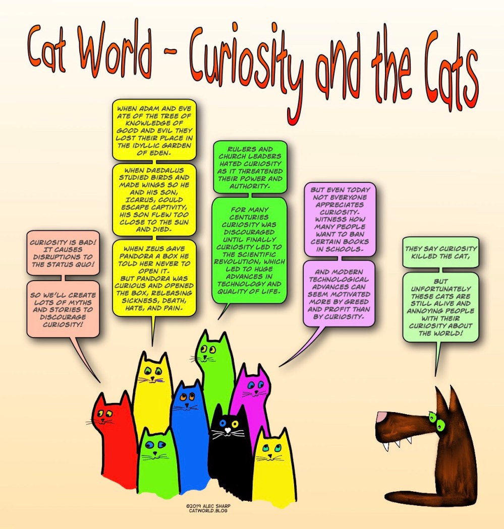 Creativity, Life, Politics, Religion Curiosity and the Cats Posted on May 2, 2019May 2, 2019 by Alec in Creativity, Life, Politics, Religion Curiosity was discouraged for a long time because it tended to disrupt the status quo. Share this: Click to share on X (Opens in new window) X Click to share on Facebook (Opens in new window) Facebook Like Loading...