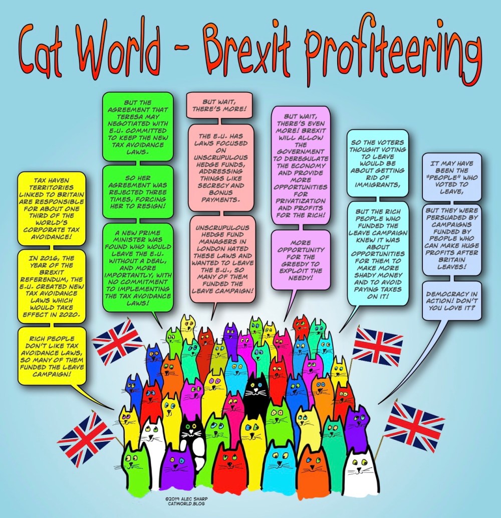 The “people” voted to Leave, but they were persuaded in part by campaigns funded by rich people who….., well, read the comic. And read this article for much more information.