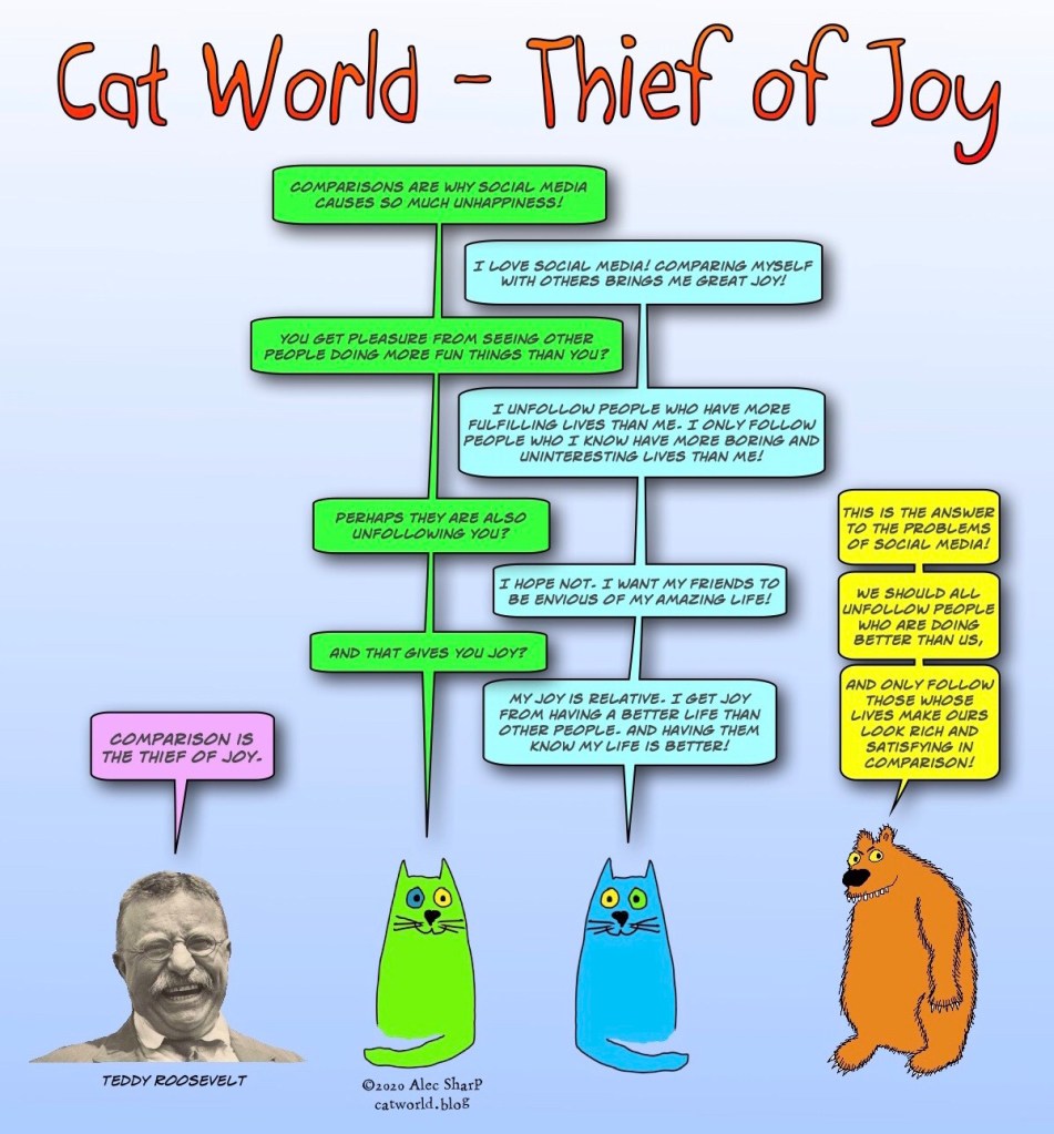 Psychology, Social Media Thief of Joy Posted on May 31, 2020 by Alec in Psychology, Social Media Comparison is the thief of joy. So how do we avoid comparisons on social media? Share this: Click to share on X (Opens in new window) X Click to share on Facebook (Opens in new window) Facebook Like Loading...