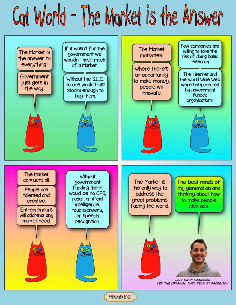 Capitalism, Social Media The Market is the Answer Posted on March 9, 2021 by Alec in Capitalism, Social Media Some people believe the free market is the answer to all problems. But what problems does it really solve? Share this: Click to share on X (Opens in new window) X Click to share on Facebook (Opens in new window) Facebook Like Loading...