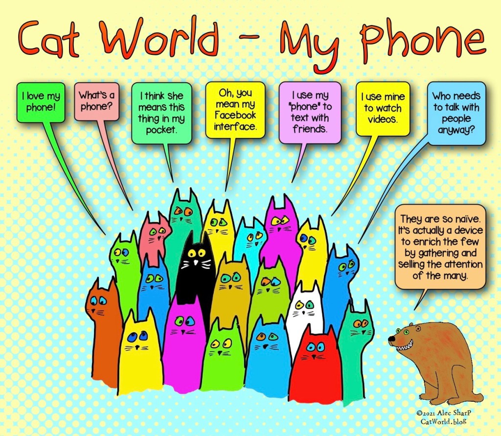 Capitalism, Social Media My Phone Posted on March 11, 2021March 9, 2021 by Alec in Capitalism, Social Media What is this small thing we carry and constantly peer at? Share this: Click to share on X (Opens in new window) X Click to share on Facebook (Opens in new window) Facebook Like Loading...