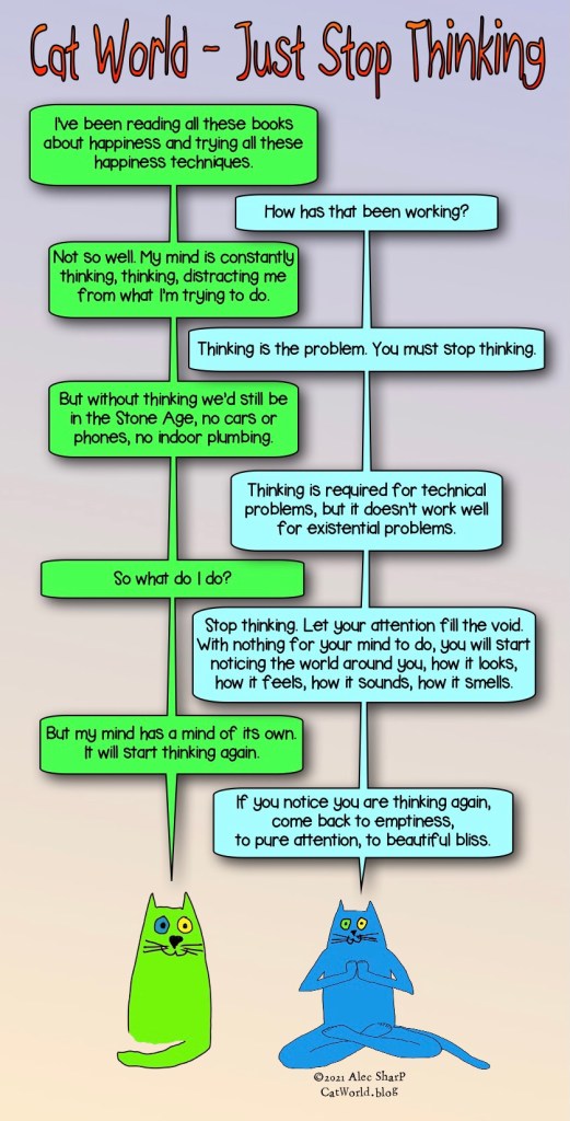 Psychology Just Stop Thinking Posted on May 31, 2021 by Alec in Psychology Too much thinking is unhealthy. Sometimes we need to just refrain from thinking. Share this: Click to share on X (Opens in new window) X Click to share on Facebook (Opens in new window) Facebook Like Loading...