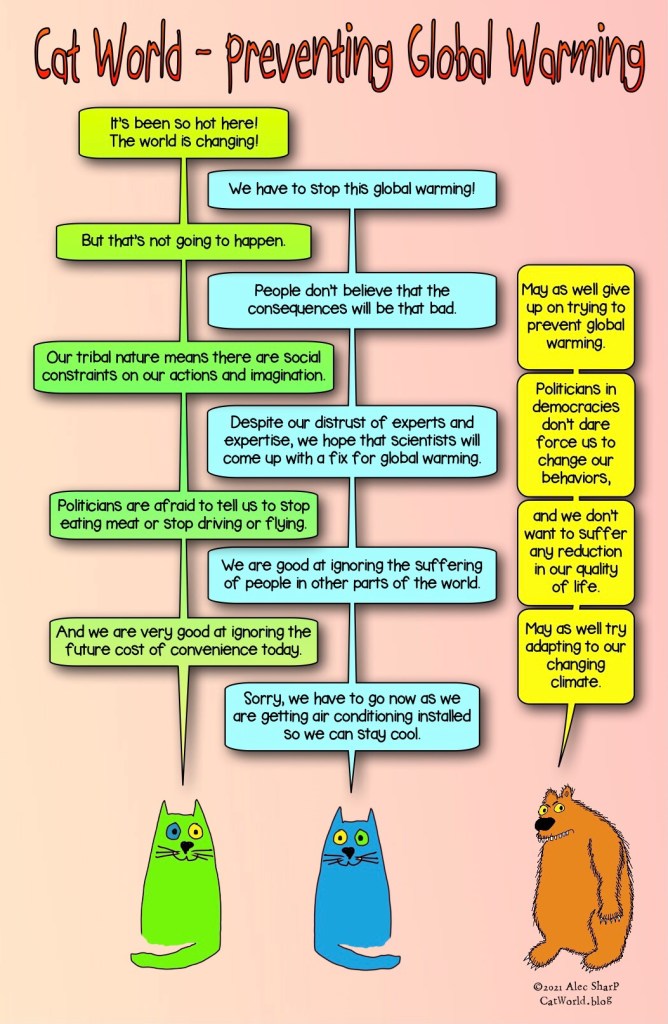 Climate Change Preventing Global Warming Posted on August 6, 2021 by Alec in Climate Change The cats don’t believe we are capable of preventing Global Warming. Share this: Click to share on X (Opens in new window) X Click to share on Facebook (Opens in new window) Facebook Like Loading...