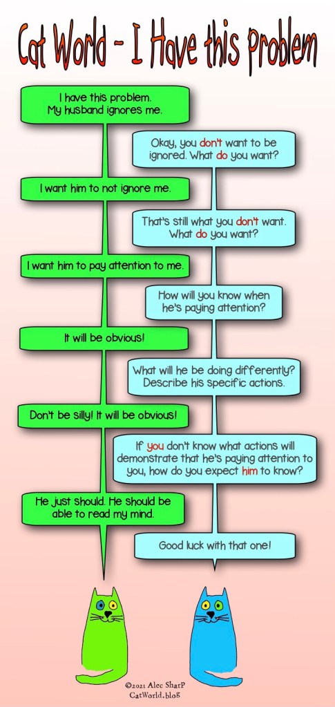 But if you want to avoid frustration, confusion, and disappointment, tell people what you want and tell them how you will know when you have it.