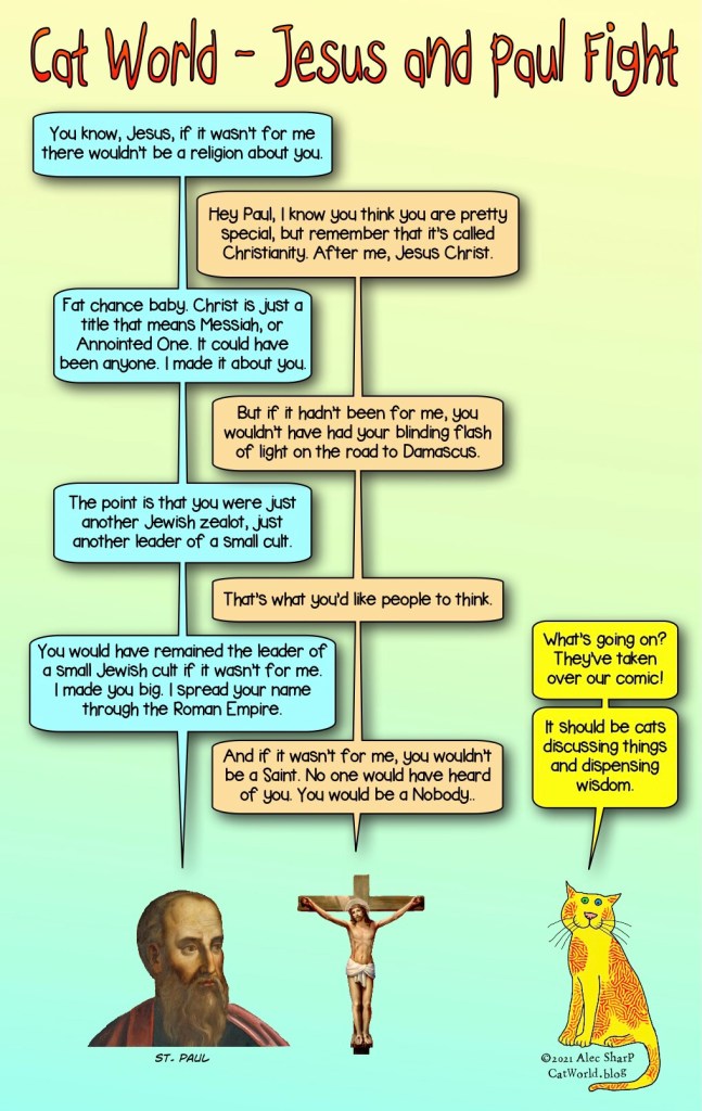Religion Jesus and Paul Fight Posted on October 30, 2021 by Alec in Religion It’s an open question who was more important in the spread of Christianity. Share this: Click to share on X (Opens in new window) X Click to share on Facebook (Opens in new window) Facebook Like Loading...
