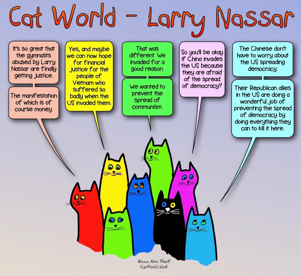Life Larry Nassar Posted on December 15, 2021 by Alec in Life Funny how one thought leads to another…. Share this: Click to share on X (Opens in new window) X Click to share on Facebook (Opens in new window) Facebook Like Loading...