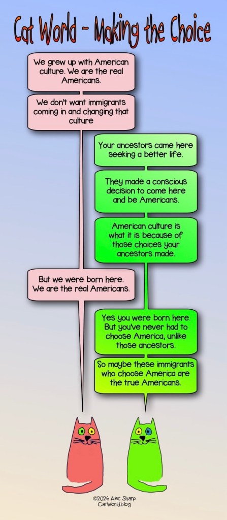 Uncategorized Making the Choice Posted on January 14, 2026 by Alec in Uncategorized Who are the real Americans? After all, very few of us are descended from the original native Americans. Share this: Click to share on X (Opens in new window) X Click to share on Facebook (Opens in new window) Facebook Like Loading...