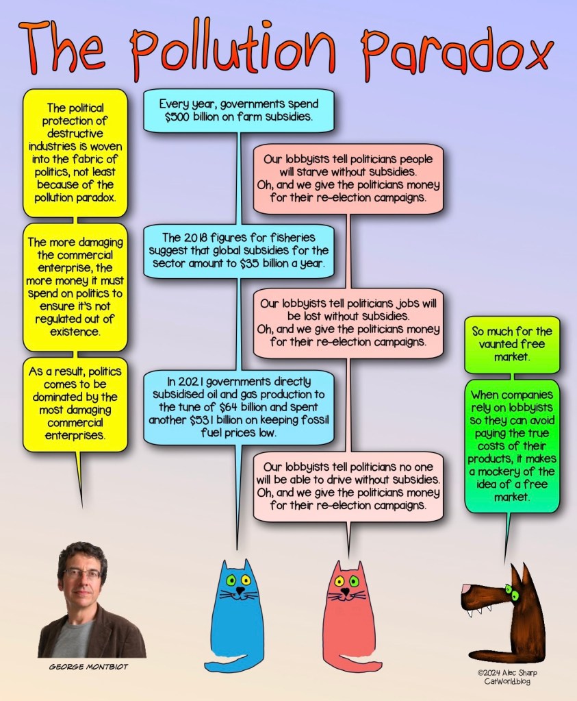 Because of the lobbying system, politics becomes dominated by the most damaging commercial enterprises. This comic is based on an article by George Monbiot.