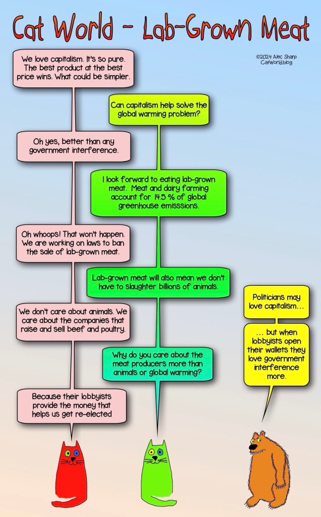 Eating lab-grown meat would be good for the planet and would reduce the horrific suffering of the billions of animals slaughtered every year. But it wouldn’t be good for some people.