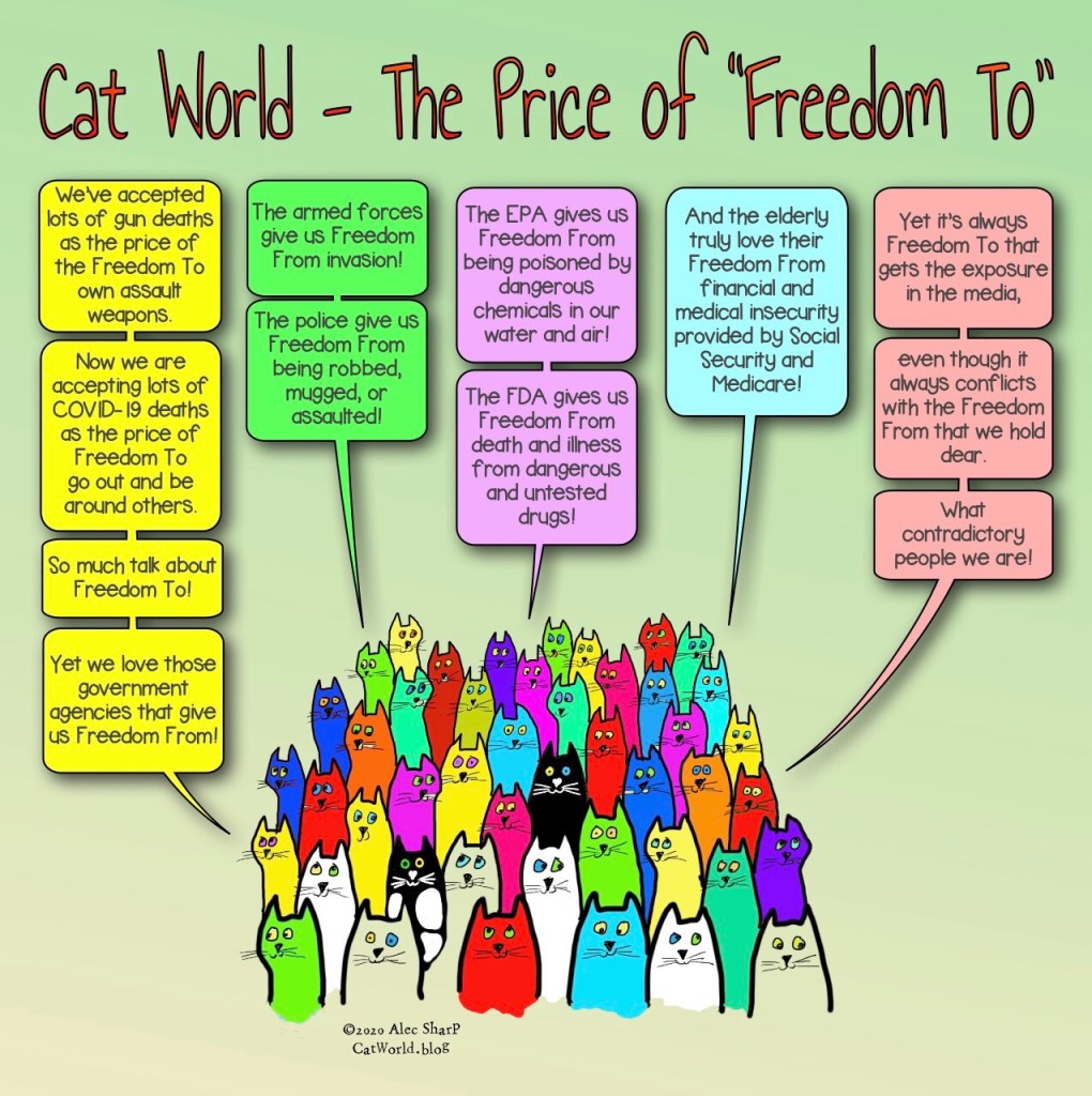 COVID-19 has shown another example of people demanding their Freedom To, a type of freedom that often conflicts with the quieter but more popular Freedom From.