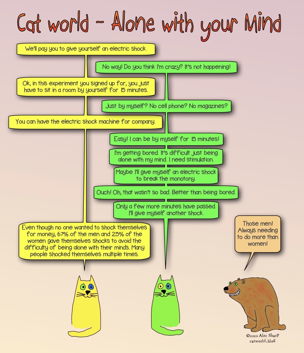Most people hate being alone with their minds. They will even suffer pain to avoid it.