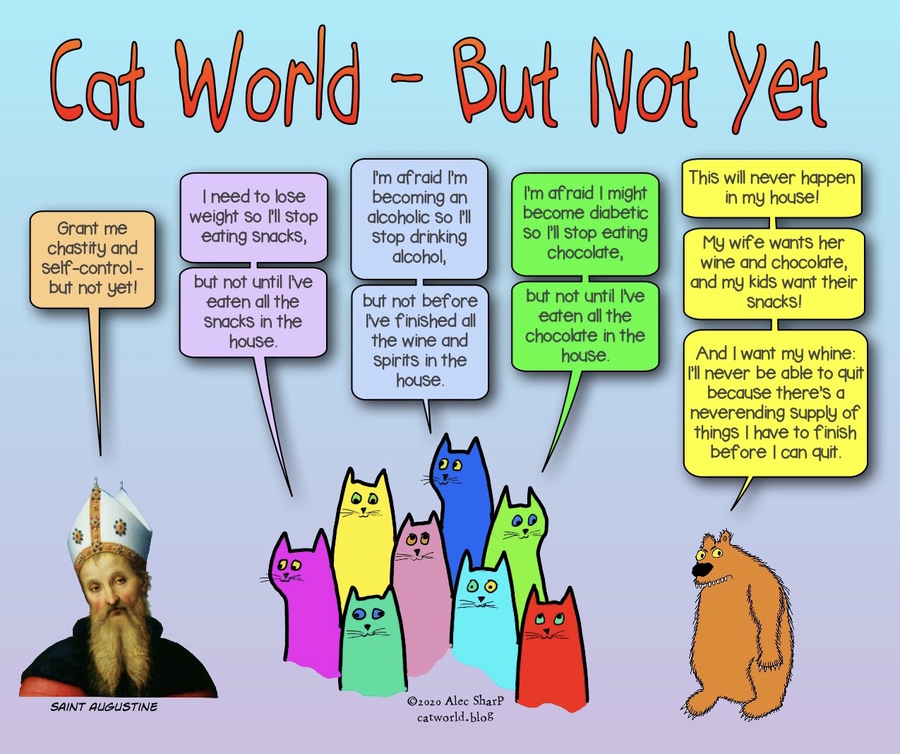 The cats have finally decided to dispense some sensible, thoughtful, caring words of wisdom for these difficult times. And in keeping with their suggestions, they thought they’d share something funny—it’s below the comic.