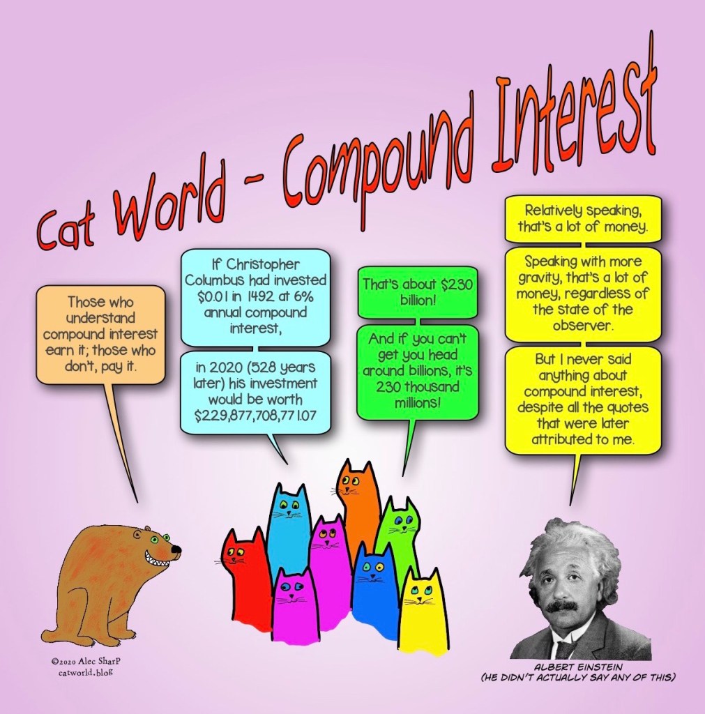 Albert Einstein is sometimes credited with quotes about compound interest that he didn’t make. I thought I’d have fun with some other fictitious quotes.