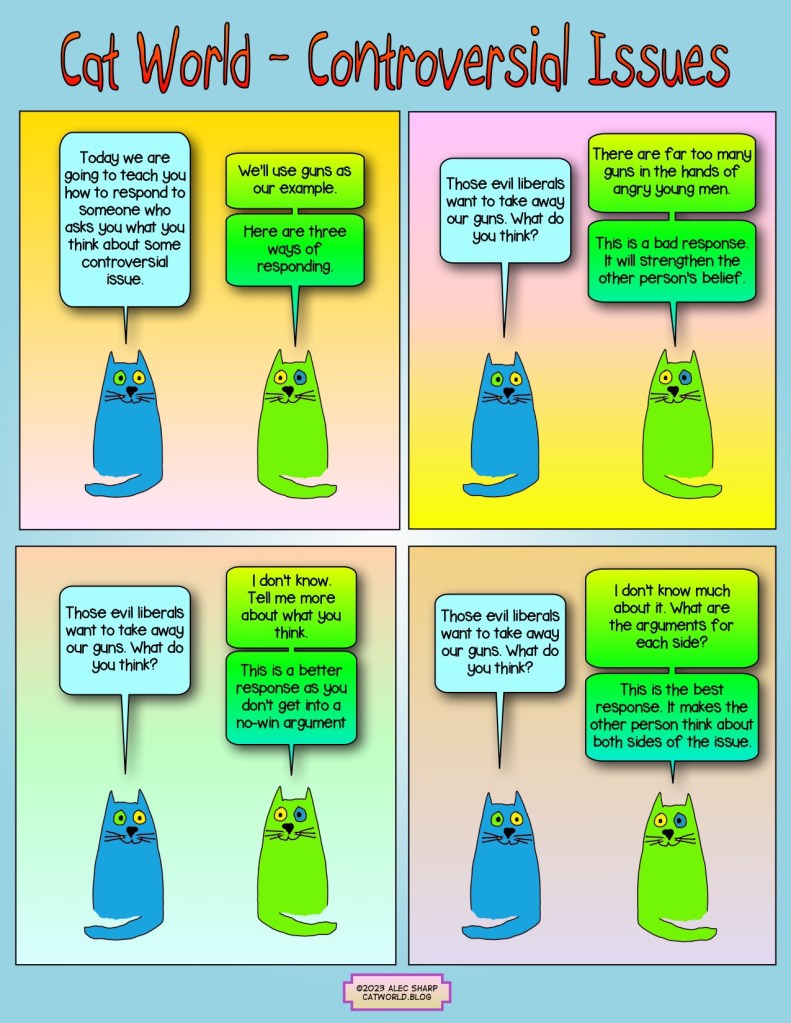 How should you respond when someone asks your opinion on a controversial issue? The cats have an answer.