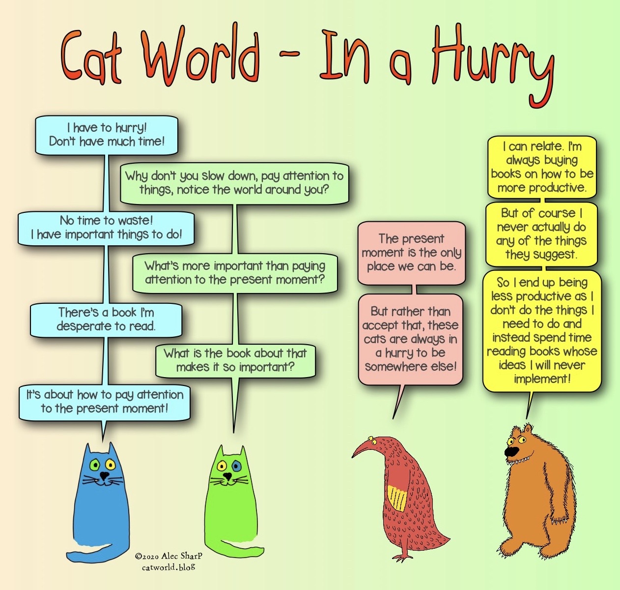 We are often in such a hurry to do important things that we don’t have time to be in the here and now.